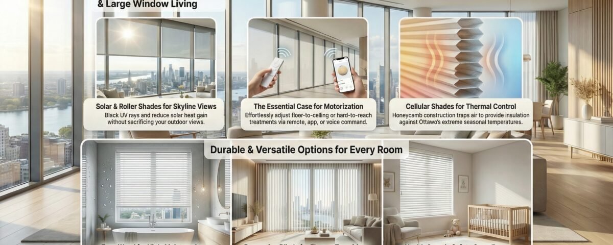 Faux wood blinds deliver the timeless appeal of natural wood with modern performance features and accessible pricing. Whether you’re upgrading a single bathroom window or outfitting an entire home, these versatile window treatments offer exceptional value for Ottawa homeowners.