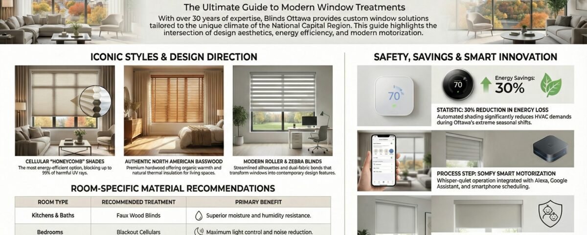 Ottawa’s climate presents unique challenges—frigid winters that can drop well below -20°C and humid summers that demand effective cooling. Your windows account for approximately 25 to 30 percent of your home’s heating energy loss, making energy-efficient window treatments essential.