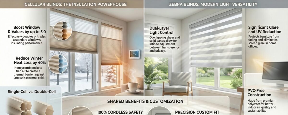 Cellular blinds represent one of the smartest investments Ottawa homeowners can make—beautiful window treatments that actively reduce energy costs while enhancing comfort year-round. Whether you’re addressing drafty older windows or maximizing efficiency in a new build, honeycomb construction delivers measurable benefits you’ll notice immediately.
